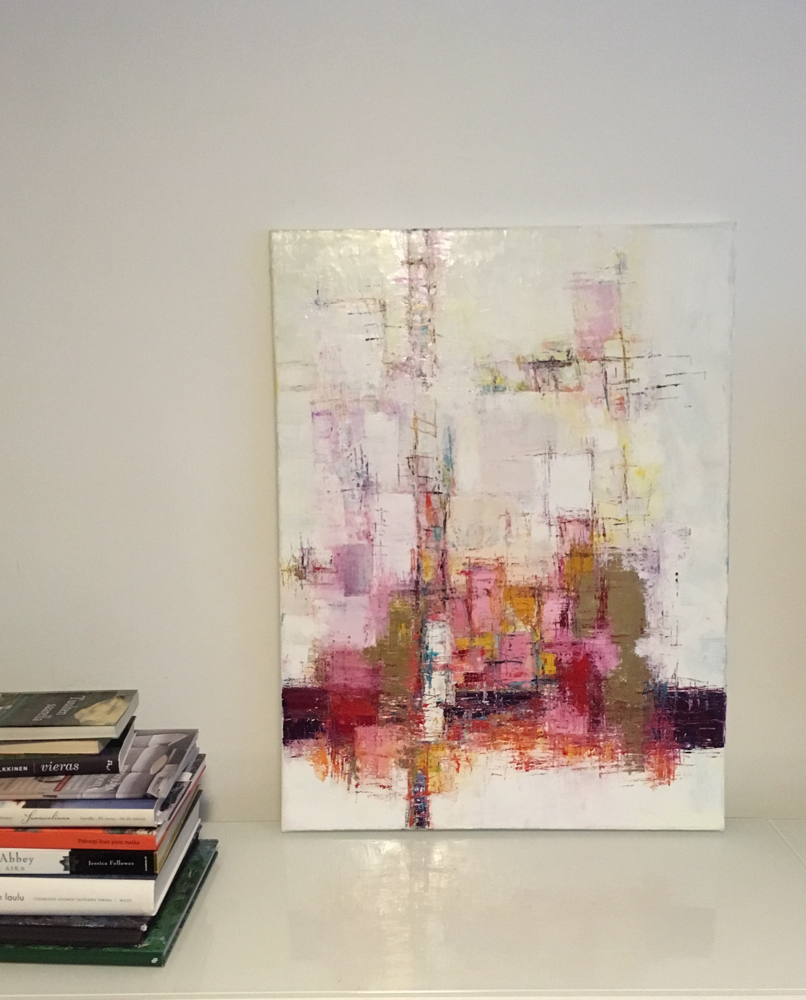 Silloin matkalaukullinen kurssitöitä löysi kodin ystävieni seiniltä. Sen jälkeen olen osallistunut näyttelyihin ja maalaillut harrastuspohjalta, usein unieni innoittamana, mutta myös tilaustöitä tehden asiakkaan puolelta saamani inspiraation mukaan.