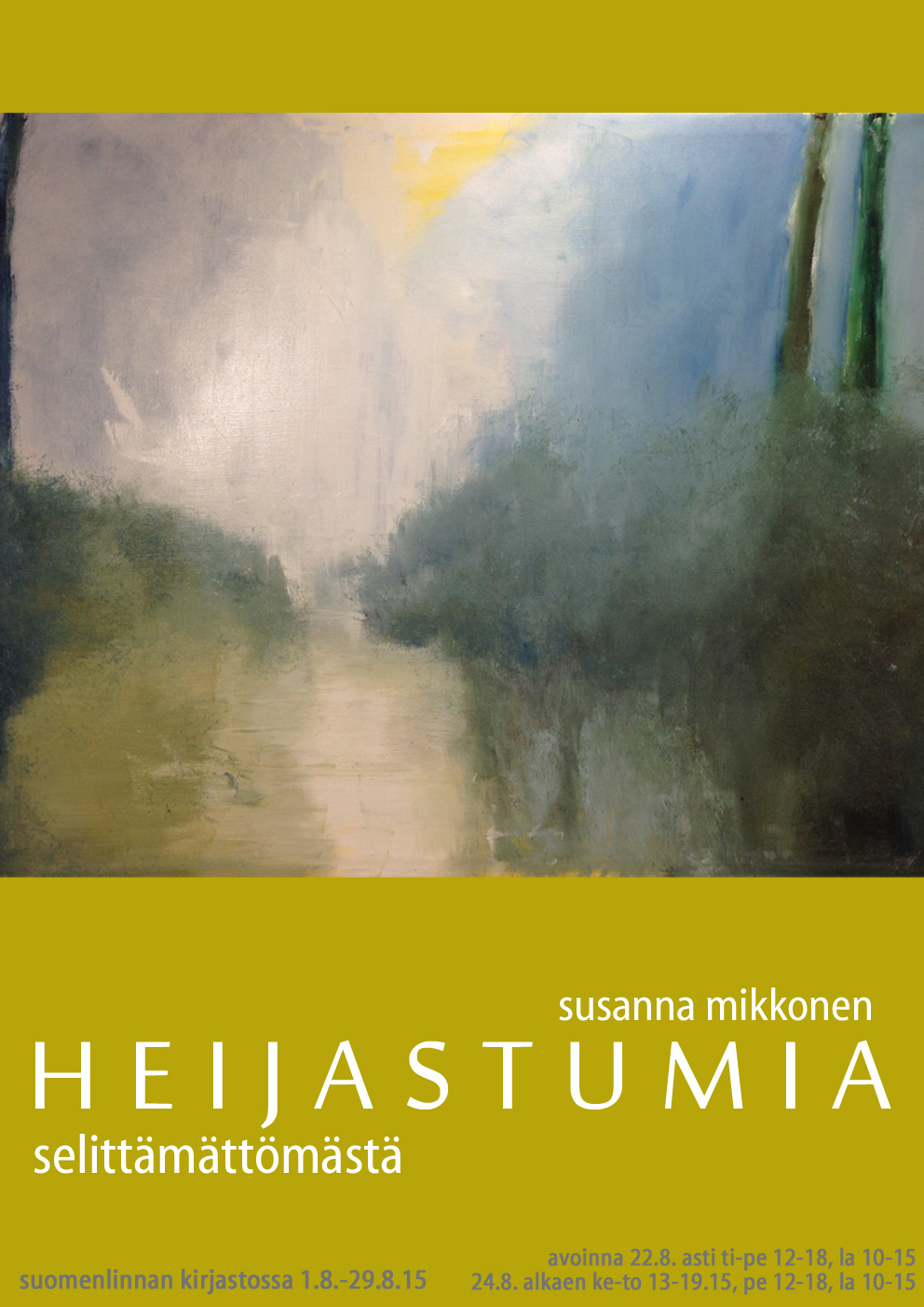 - 2015 Heijastumia, yksityisnäytely, Suomenlinnan kirjasto, Helsinki