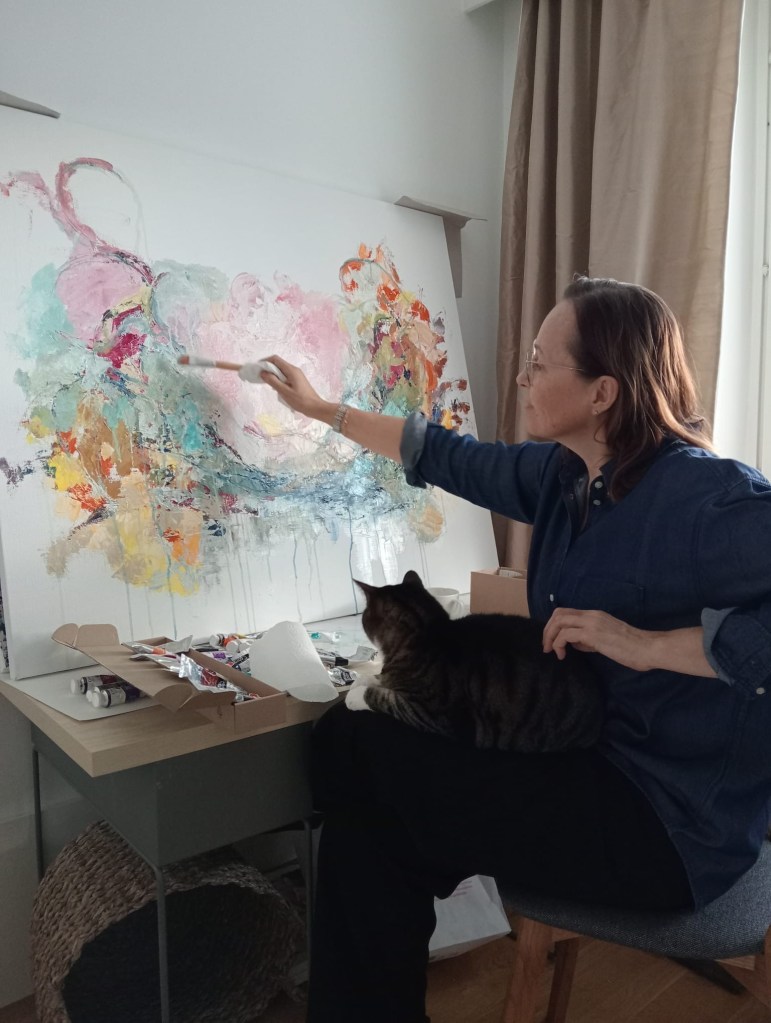 Parasta ovat hetket, jolloin aika pysähtyy – ja vain maalaan ja maalaan. Unohdun, uppoan, lepään.